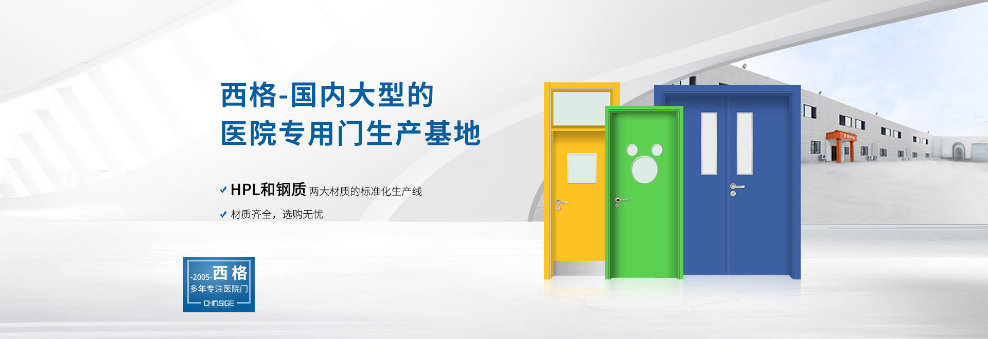 西格,國內(nèi)大型醫(yī)院門生產(chǎn)基地,斥巨資建立 HPL和鋼質(zhì)兩大材質(zhì)的標準化醫(yī)院門生產(chǎn)線,